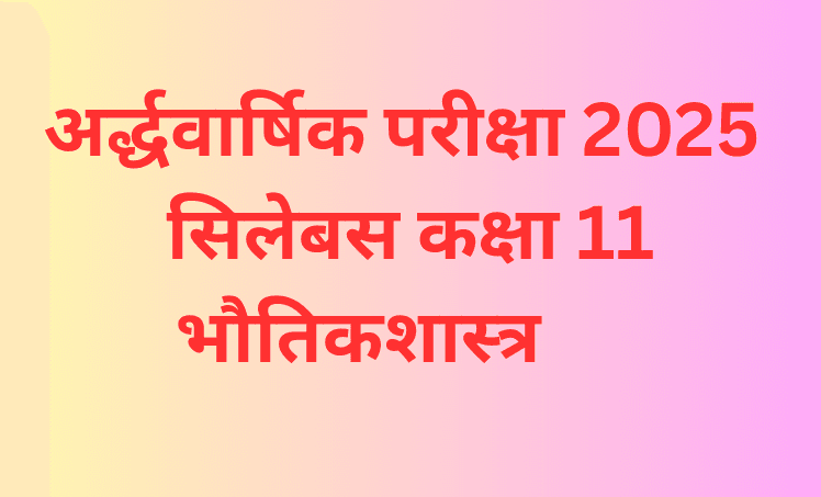 लोक शिक्षण संचालनालय भोपाल द्वारा सत्र 2025- 26 के लिए अर्द्धवार्षिक परीक्षा 2025 की समय सारणी ( टाइम टेबल ) जारी कर दी गई है अर्द्धवार्षिक परीक्षा आगामी 3 नवंबर से प्रारंभ हो रही है . अर्द्धवार्षिक परीक्षा 2025 हेतु कक्षा 11 भौतिक विज्ञान ( PHYSICS ) विषय का शैक्षणिक कैलेंडर के अनुरूप सिलेबस इस पोस्ट को अंत तक अवलोकन कर देख सकते हैं