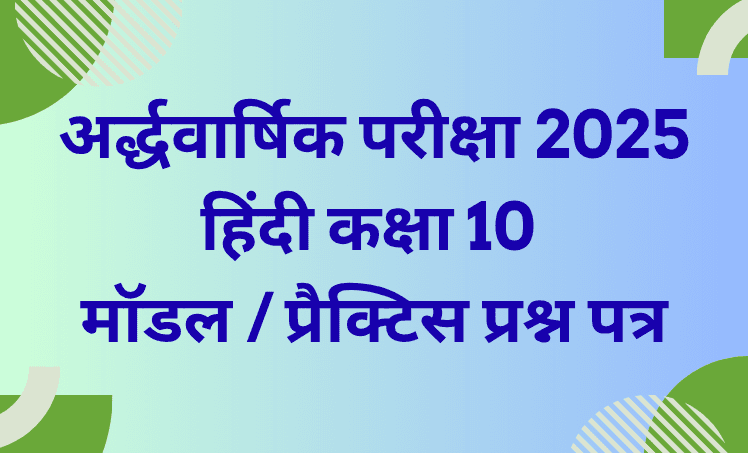 अर्द्धवार्षिक परीक्षा 2025 – हिंदी कक्षा 10 के लिए मॉडल / प्रैक्टिस प्रश्न पत्र