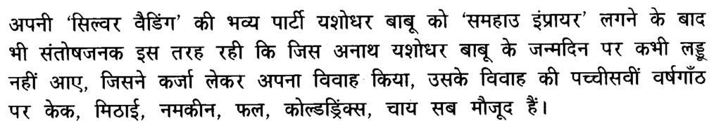प्रश्न – सिल्वर वेडिंग की भव्य पार्टी यशोधर बाबू को समहाउ इंप्रोपर लगने के बाद भी संतोषजनक रही लिखिए