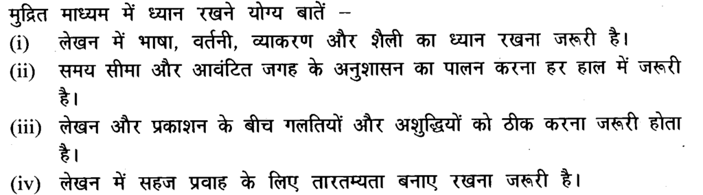 प्रश्न- मुद्रित माध्यमों में लेखन के लिए ध्यान रखने योग्य किन्हीं दो बातों को लिखिए