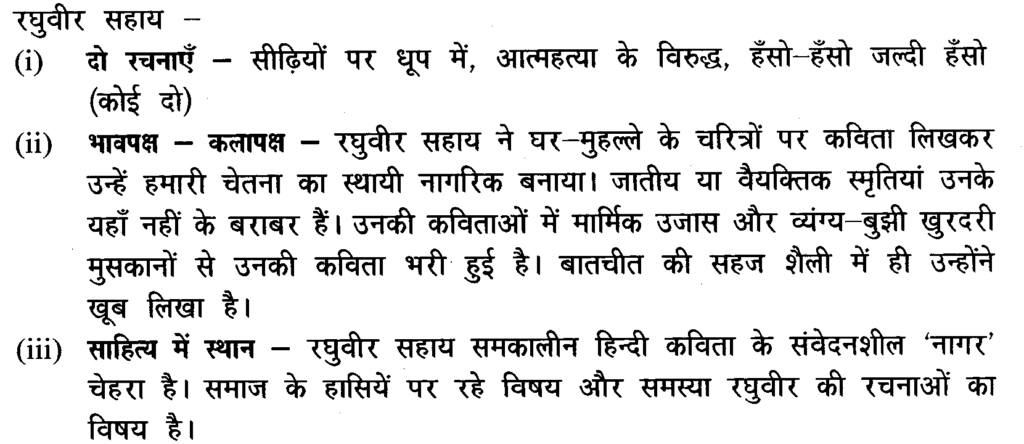 प्रश्न- रघुवीर सहाय अथवा फिराक गोरखपुरी का काव्यगत परिचय निम्न बिंदुओं के आधार पर लिखिए