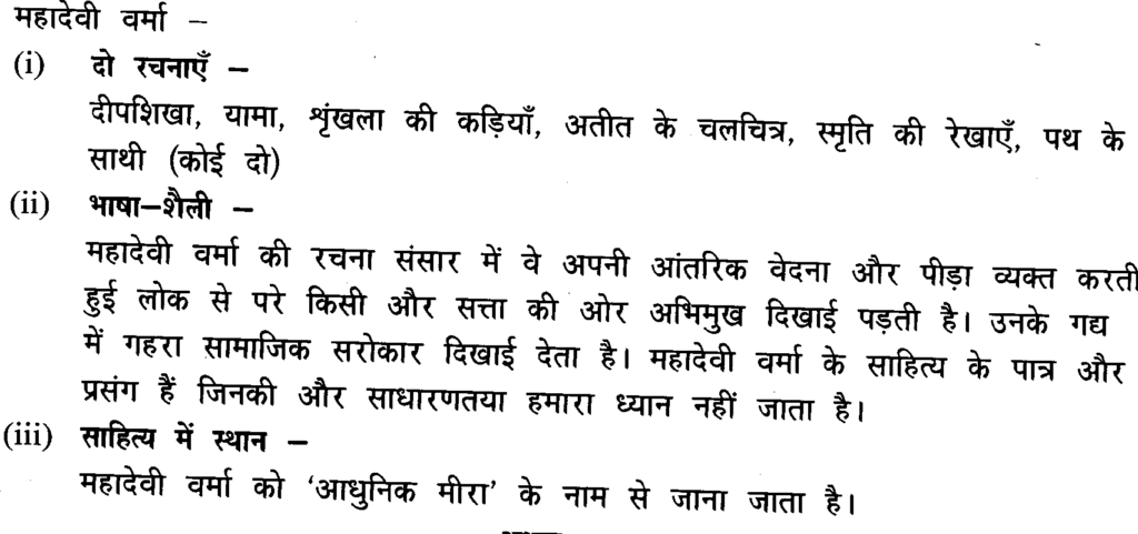 प्रश्न- महादेवी वर्मा अथवा हजारी प्रसाद द्विवेदी का साहित्यिक परिचय निम्न बिंदुओं के आधार पर लिखिए