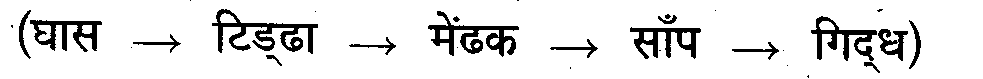किसी एक पारिस्थितिक तंत्र की आहार श्रृंखला में विभिन्न पोषी स्तर प्राणियों के केवल नाम लिखिए।