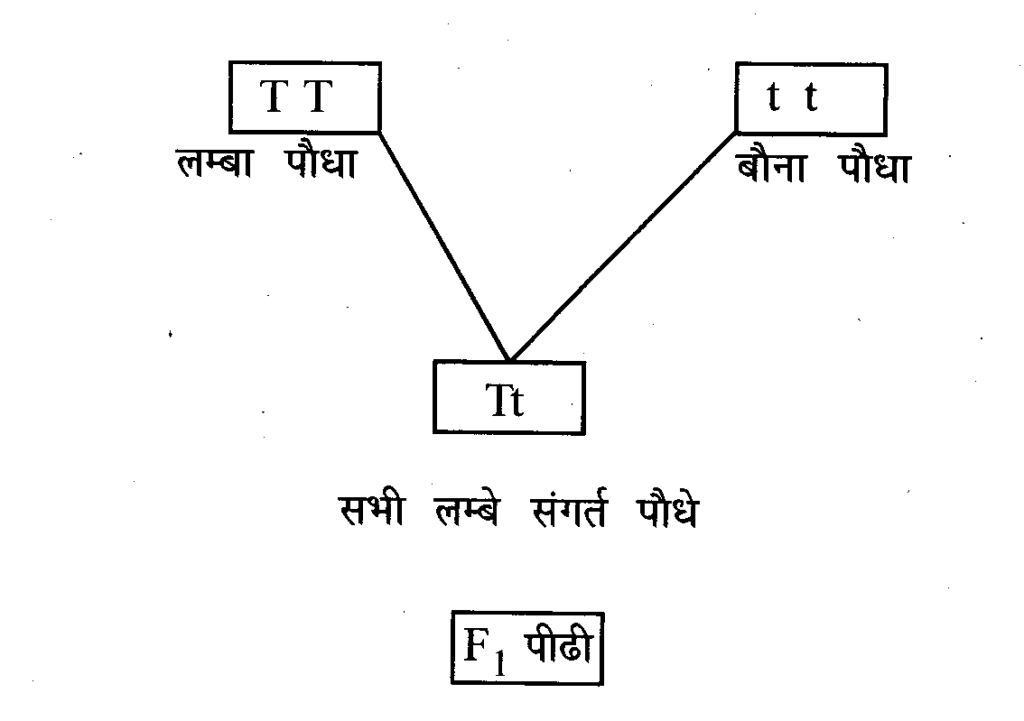 वंशागति के प्रथम संतति पीढ़ी (F₁) का रेखा चित्र बनाइए।