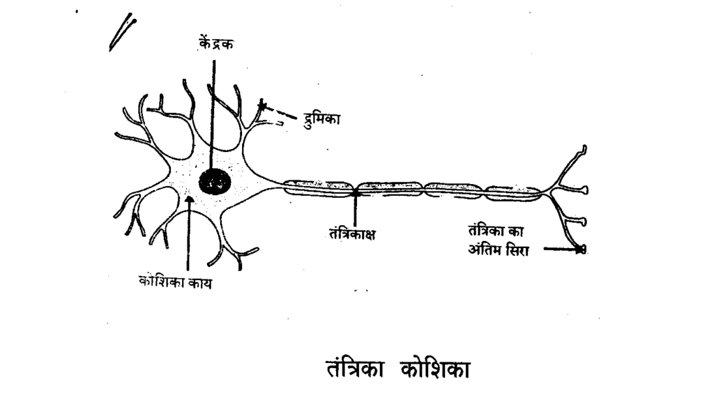 तंत्रिका कोशिका का चित्र बनाइए तथा किसी कोशिका के दो कोशिकांगों के नाम लिखिए।