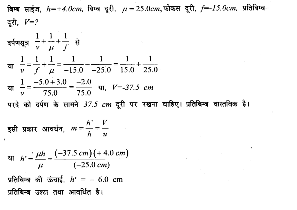 कोई 4.0 cm आकार का बिम्ब किसी 15.0 cm फोकस दूरी के अवतल दर्पण से 25.0 cm दूरी पर रखा है। दर्पण से कितनी दूरी पर किसी पर्दे को रखा जाए कि स्पष्ट प्रतिविम्ब प्राप्त हो ? प्रतिबिम्ब की प्रकृति तथा आकार ज्ञात कीजिए।